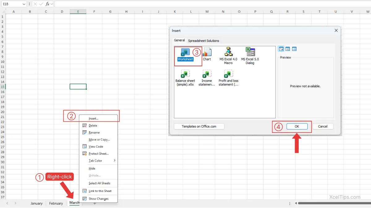 This is the fastest and most beginner-friendly way to insert a new sheet. Follow these steps to create a new worksheet: