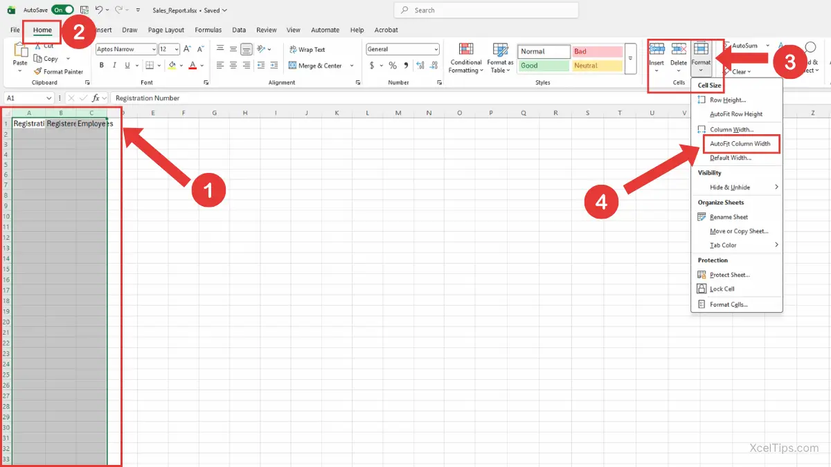 AutoFit Columns from the Home Tab