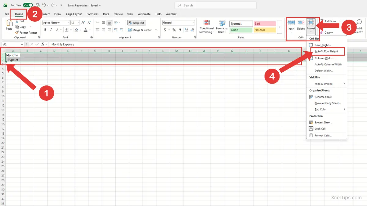 How to AutoFit in Excel from the Home Tab