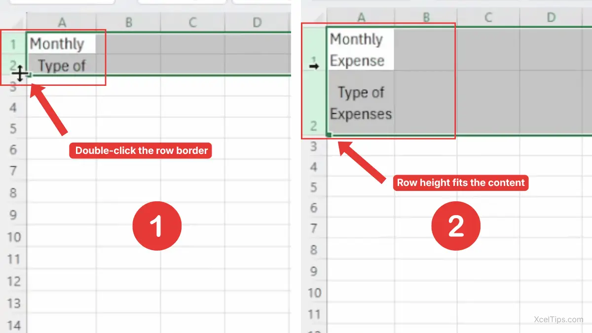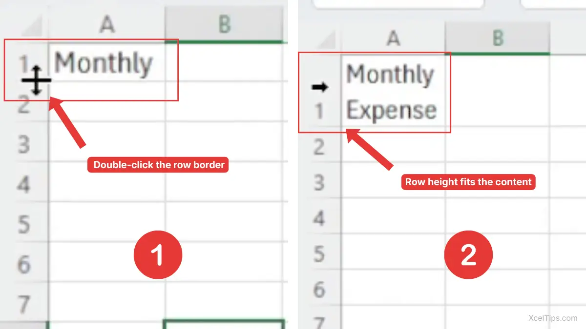 - Excel adjusts the row height to fit the content.