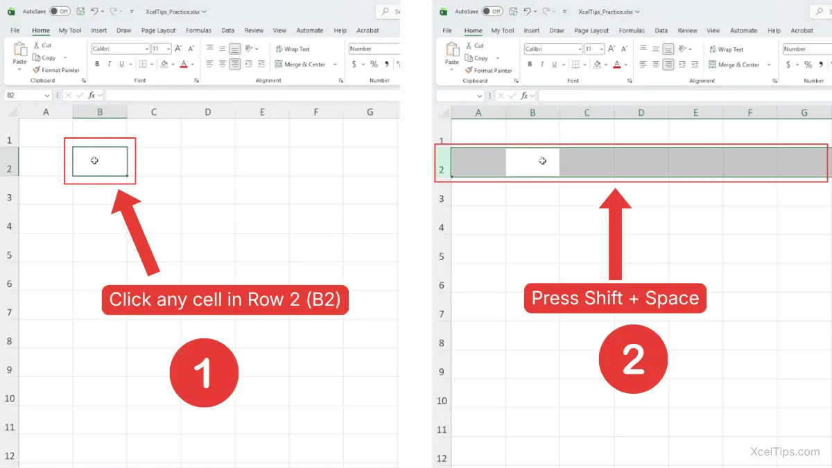 If you want a faster option without relying on the mouse, Excel also gives you a simple row-selection shortcut.