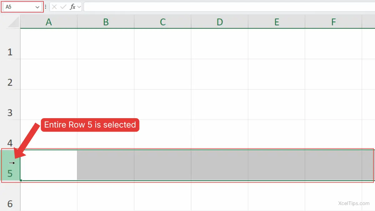 This visual feedback helps confirm that Excel is about to work on the full row.