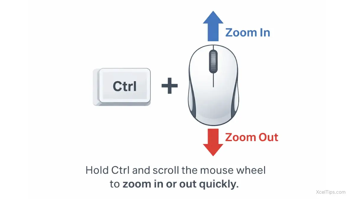 This is one of the quickest ways to zoom while you are actively working. For many beginners, it is the most practical Excel zoom shortcut because it feels fast and natural once you get used to it.