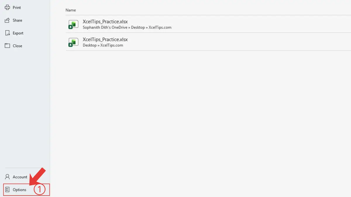 Open Excel and click the File tab. Then follow these steps: