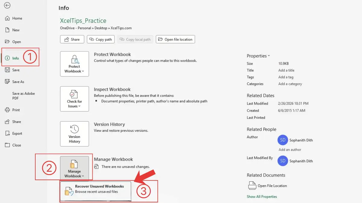 How to Recover an Unsaved Excel File from the Info Menu
