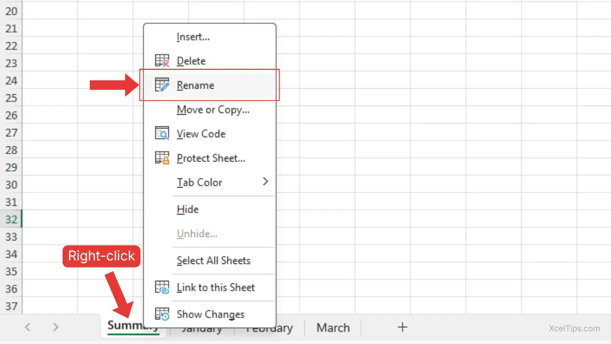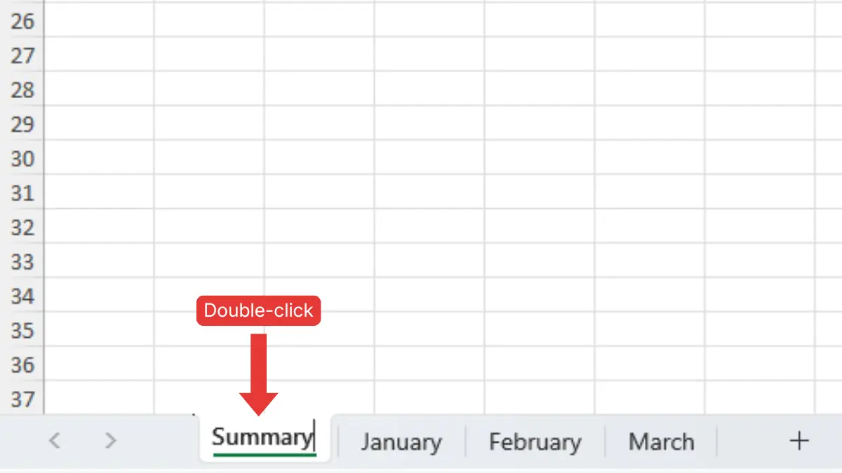 - You can rename a sheet by double-clicking the tab or using the right-click menu.