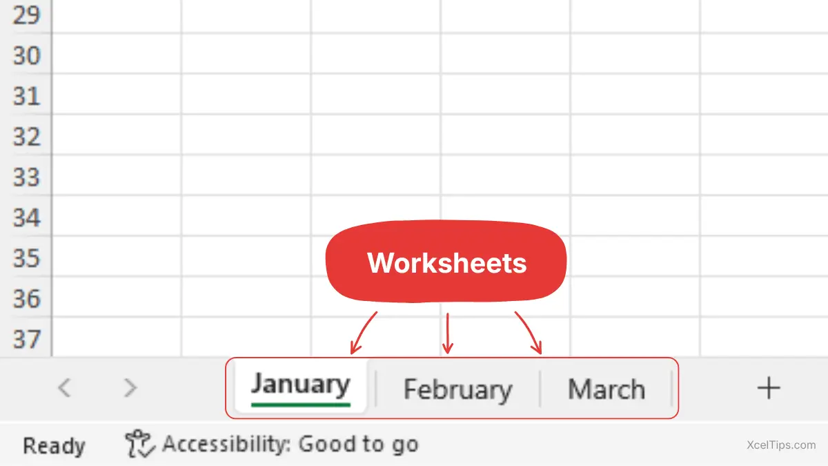 • A file named XcelTips.xlsx is a workbook.